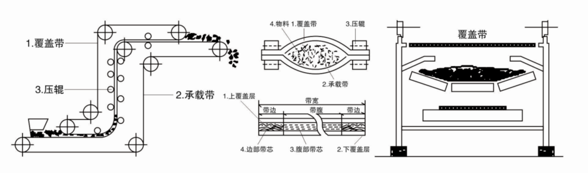 覆蓋密封輸送帶為輸送系統(tǒng)遮蓋了環(huán)境的灰塵、水、風(fēng)。骨架層采用的是特殊的尼龍織物、鋼絲簾線層等,不僅具有優(yōu)良的縱向彈性,也有優(yōu)良的橫向剛性,因此廣泛應(yīng)用在卸料機(jī)、回收裝置、自動(dòng)卸料輸送機(jī)等。